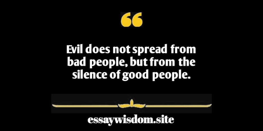 Evil does not spread from bad people, but from the silence of good people.