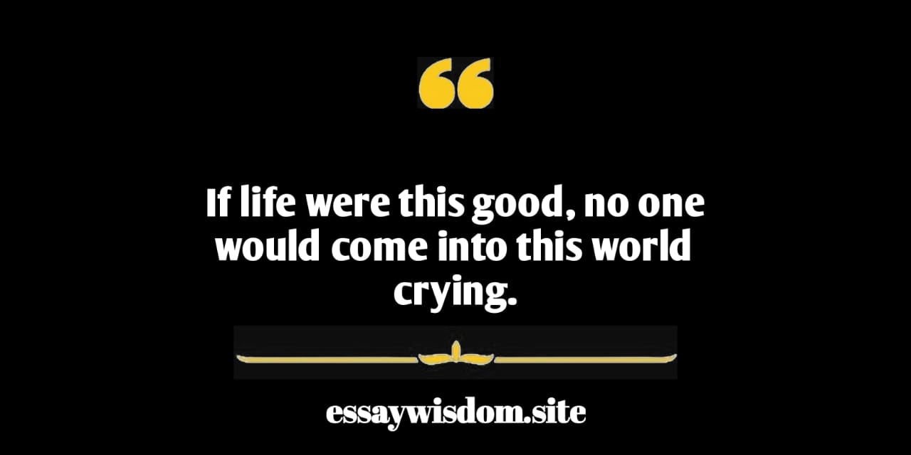 If life were this good, no one would come into this world crying.