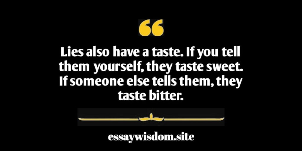 Lies also have a taste. If you tell them yourself, they taste sweet. If someone else tells them, they taste bitter.